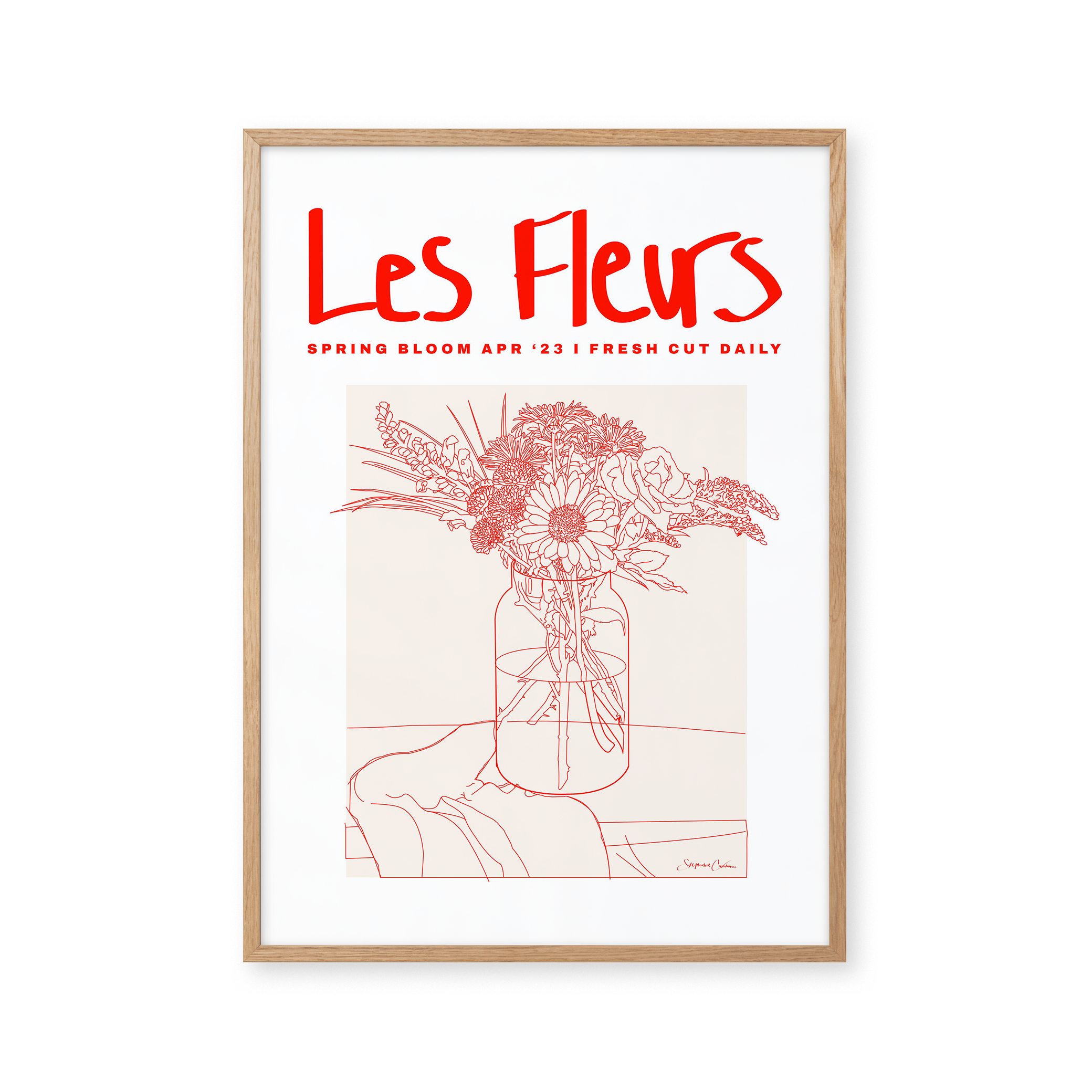 The art poster: “Les Fleurs Red" by the artist Stephie Cardona is a graphically illustrated poster curated by Peléton. It has been significant for her that the poster is open to interpretation.