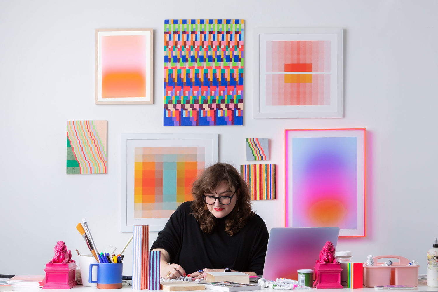 Jessica elsker at lege med farver og opdage uventede kombinationer. Hun er opmærksom på kompositionens følelsesmæssige indvirkning og mærker et skift, når alting falder på plads. Hun håber, at folk vil betragte hendes værker som et fristed.