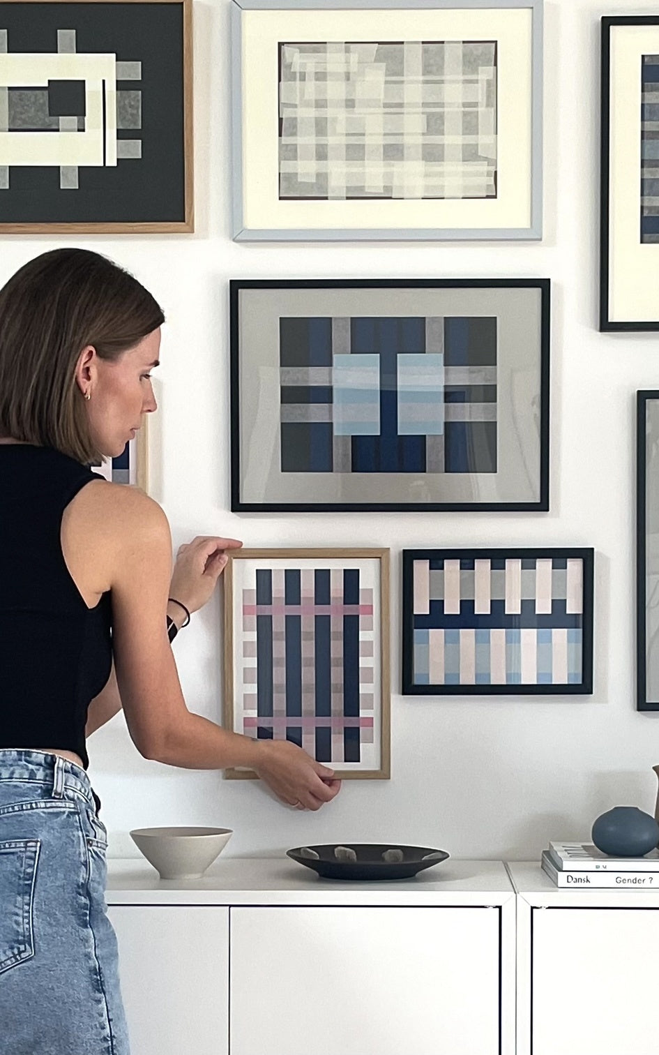 Louise Binnerup udforsker former, farver og linjer i sine værker og skaber et grafisk udtryk, der fremhæver det rolige og afbalancerede. Hendes kunst er kendetegnet ved enkle, men stærke former og en minimalistisk tilgang til farver, der tilfører et tidløst, underspillet udtryk til ethvert rum. Hendes værker er skabt til at tilføre liv og farve uden at overtage indretningen.