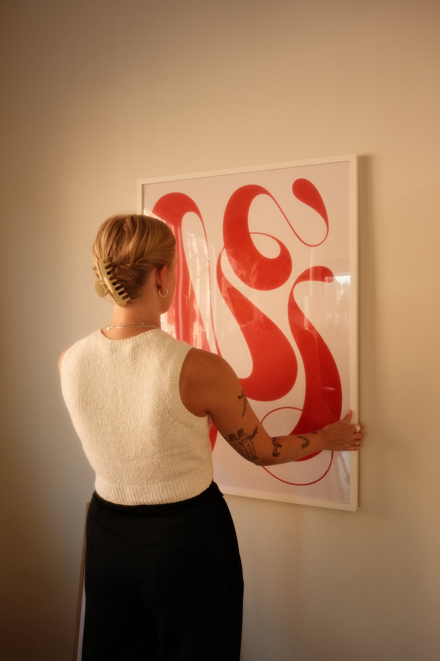 Alle værker bliver trykt og indrammet på bestilling i vores produktion i København. Vi sender inden for 2-4 hverdage, så du hurtigt kan nyde din nye kunstplakat derhjemme – uden at gå på kompromis med kvalitet eller finish.