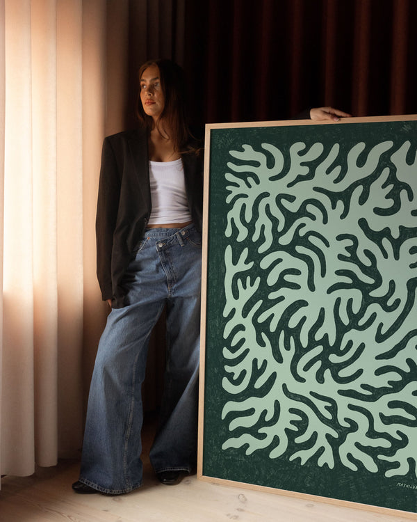 Alle værker bliver trykt og indrammet på bestilling i vores produktion i København. Vi sender inden for 2-4 hverdage, så du hurtigt kan nyde din nye kunstplakat derhjemme – uden at gå på kompromis med kvalitet eller finish.