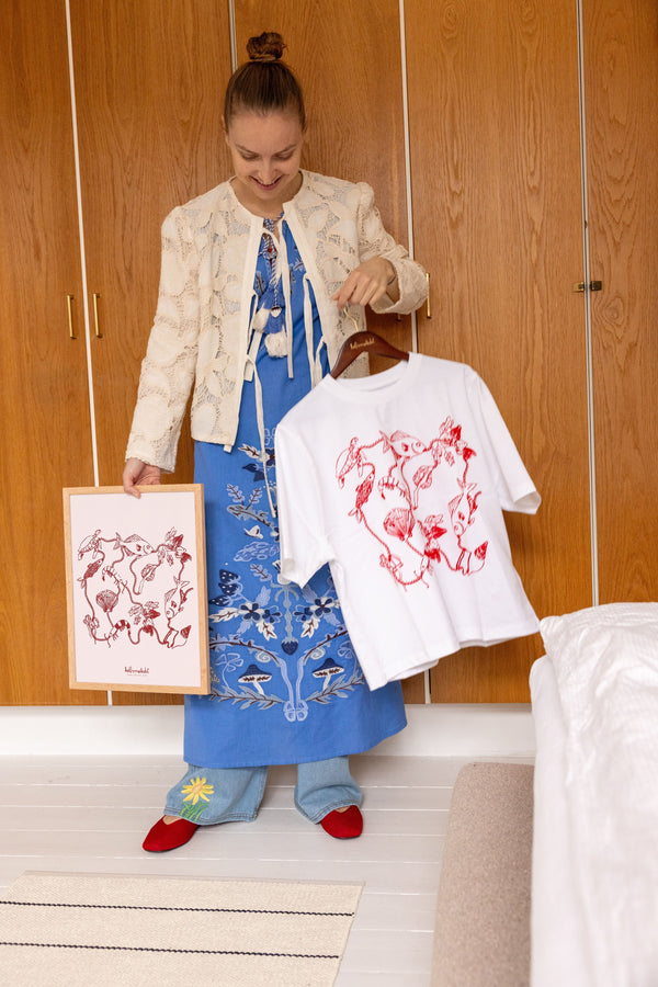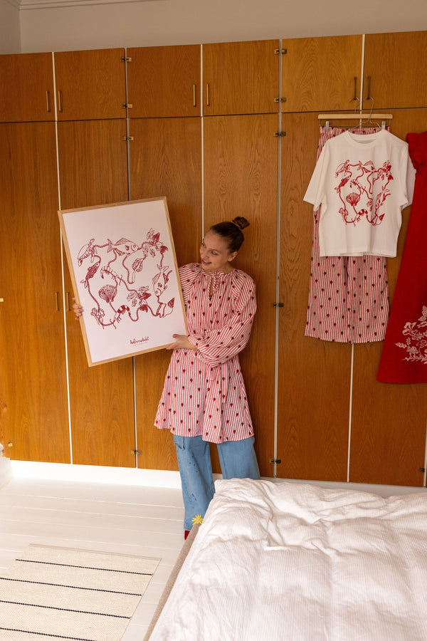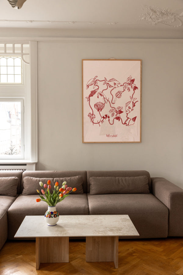 Kunstplakaten "Ocean Garden – Red" er malet af Emilie Helmstedt og indgår i den eksklusive kunstserie Peléton x Helmstedt, hvor interiør, design og fashion smelter sammen i et fælles univers. Et helt unikt samarbejde, som kun kan opleves her.