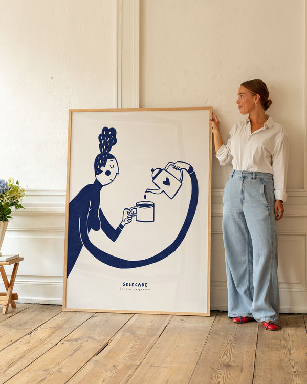 Kunstplakaten: “Selfcare” af kunstneren Martin Jørgensen er en illustreret plakat der er kurateret af Peléton. Det har været betydningsfuldt for Martin Jørgensen, at plakaten står til fri fortolkning.