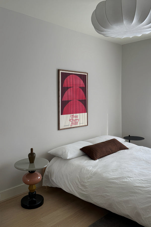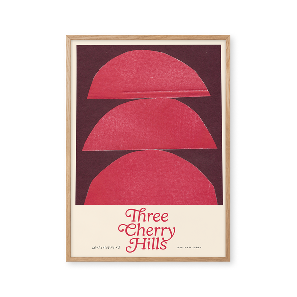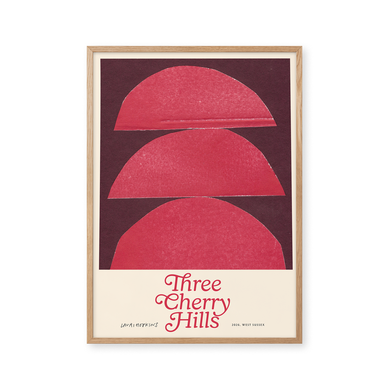 Kunstplakaten: "Three Cherry Hills” af kunstneren Lauri Hopkins forener papirklip og collage i en sanselig og harmonisk komposition. Værket er eksklusivt skabt til Peléton og står åbent for fri fortolkning.