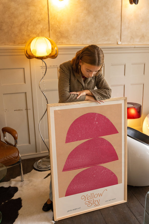 Kunstplakaten: "Yellow Sky” af kunstneren Lauri Hopkins forener papirklip og collage i en sanselig og harmonisk komposition. Værket er eksklusivt skabt til Peléton og står åbent for fri fortolkning.