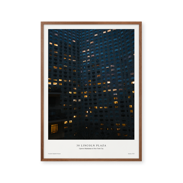 Kunstplakaten: “30 Lincoln Plaza” af kunstnerne Frederik Højfeldt er en grafisk illustreret plakat der er eksklusivt lavet til Peléton. Det har været betydningsfuldt for dem, at plakaten står til fri fortolkning. Dette værk er en del af en samling af eksklusive kunstplakater der udtrykker minimalisme og enkelhed.