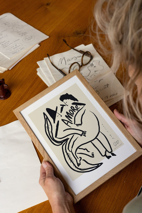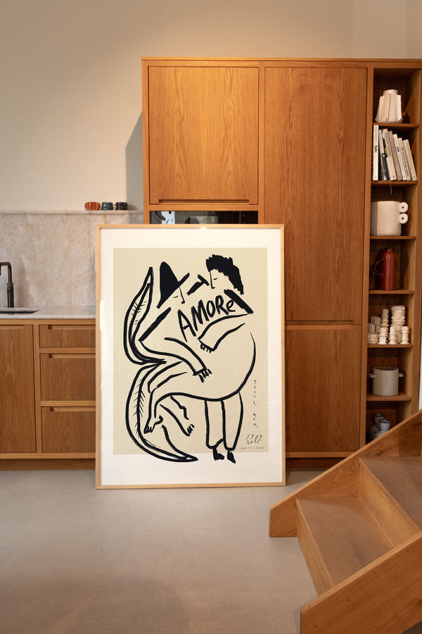 Kunstplakaten: “Amore” er skabt af kunstneren Das Rotes Rabbit og er en del af en kunstserie eksklusivt lavet til Peléton. Serien har karakter og personlighed og fungerer perfekt som et statement piece eller i samspil med de øvrige værker i serien. Farverne og den minimalistiske stil smelter sammen og skaber et harmonisk udtryk, der tilføjer dybde og elegance til ethvert rum.