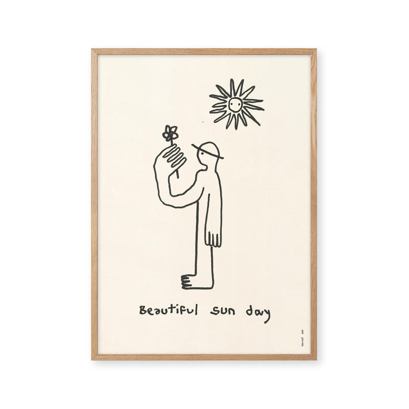 The art poster: “Beautiful Sunday” by the artist Eden Kalif is a graphically illustrated poster curated by Peléton. It has been meaningful to her that the poster is open to interpretation.