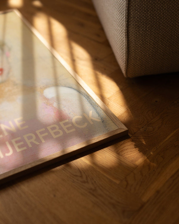 Our frames are made from high-quality materials and are available in solid oak, dark-stained oak, and black-painted pine. All frames come with genuine glass, while the largest sizes (70 × 100 cm and 100 × 140 cm) feature 2 mm acrylic glass that looks like glass but is lighter and more shatter-resistant.