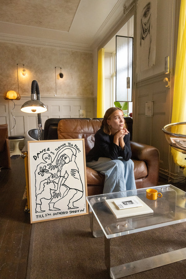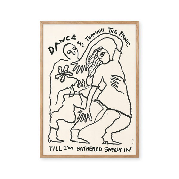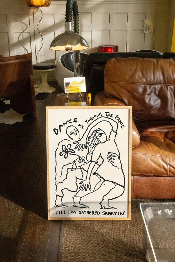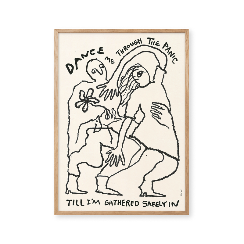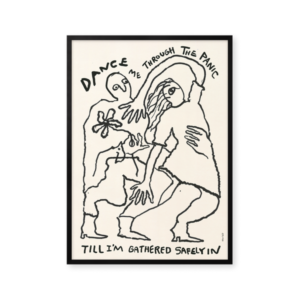 The art poster: “Dance Me to the End of Love” by the artist Eden Kalif is a graphically illustrated poster curated by Peléton. It has been meaningful to her that the poster is open to interpretation.
