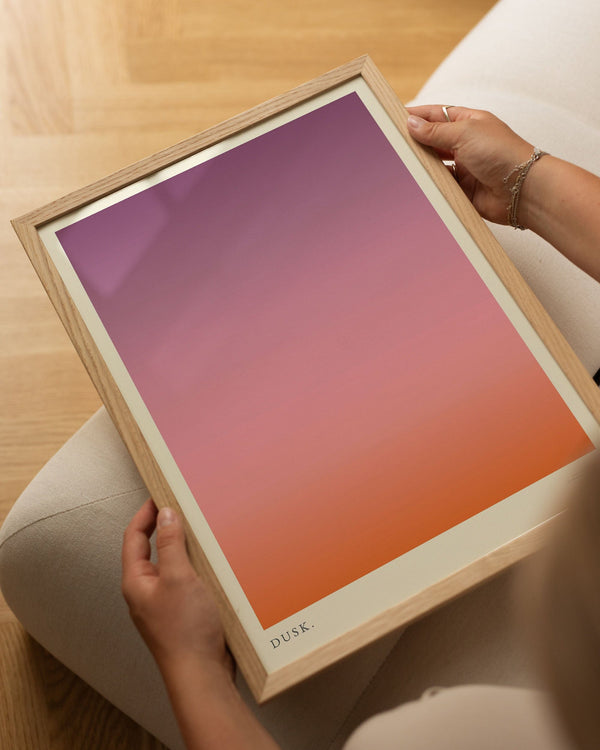 Our frames are made from high-quality materials and are available in solid oak, dark-stained oak, and black-painted pine. All frames come with real glass, while the largest sizes (70 × 100 cm and 100 × 140 cm) feature 2 mm acrylic glass, which looks like glass but is lighter and more shatter-resistant (durable).