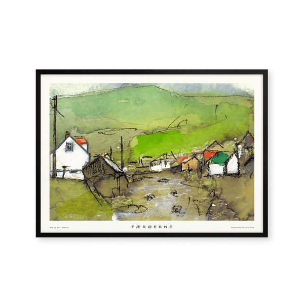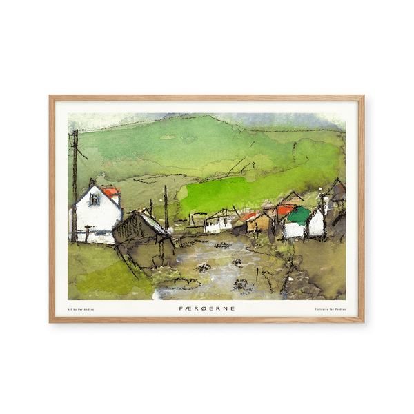 The art poster: “FÆRØERNE” by the artist Per Anders is a painted and graphic poster made exclusively for Peléton. This is a high-quality reproduction of the original artwork with a colorful museum layout. It has been important for Per Anders that the poster is open to interpretation.