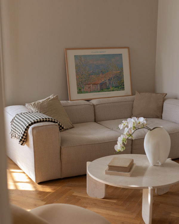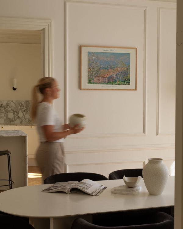 The art print: “Gardener’s House at Antibes” by the artist Claude Monet is a painted artwork recreated as a poster by Peléton. This poster collection with Claude Monet’s colorful art prints with light colors is characterized by his realistic and impressionistic style. This poster is part of Peléton’s vintage collection with museum layout. The art print is produced on quality paper, with long durability, high opacity, and detailed color reproduction.