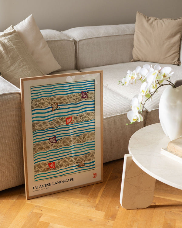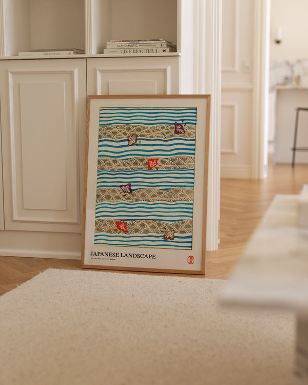The art print: "Japanese landscape" by the artist Watanabe Seitei is a poster that Peléton has recreated based on his iconic woodcuts. This poster series with Watanabe Seitei art prints is based on his most famous works. This poster is part of Peleton's vintage collection with museum layout. The art print is produced on quality paper with long durability, high opacity, and detailed color reproduction.