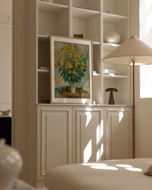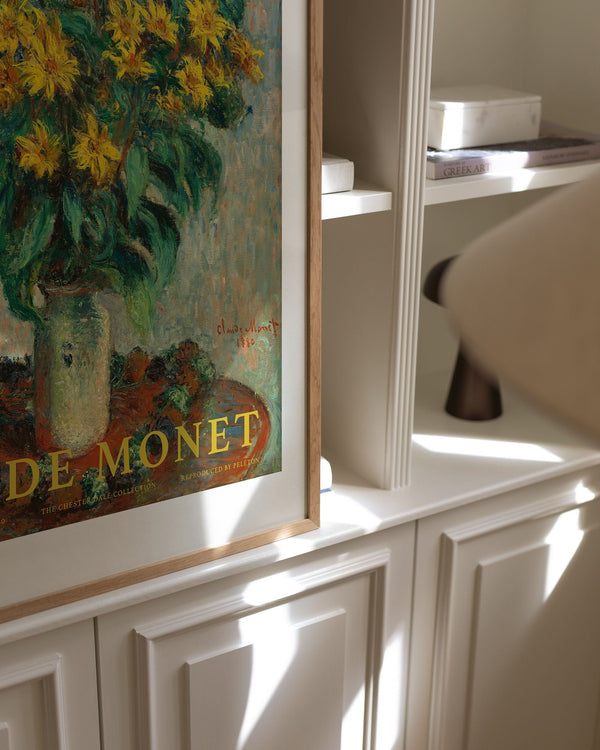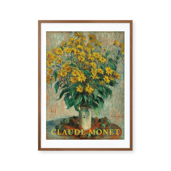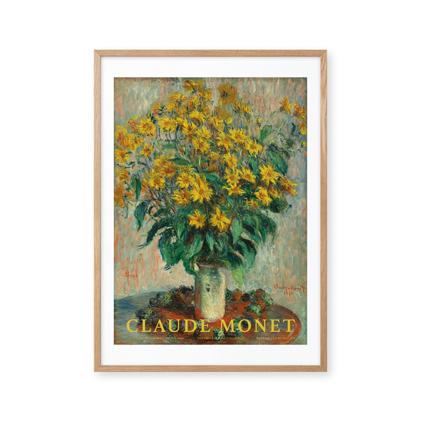 The art print: “Jerusalem Artichoke Flowers” by the artist Claude Monet is a painted artwork recreated as a poster by Peléton. This poster collection with Claude Monet's colorful art prints with light colors is characterized by his realistic and impressionistic style. This poster is part of Peléton's vintage collection with museum layout. The art print is produced on quality paper, with long durability, high opacity, and detailed color reproduction.