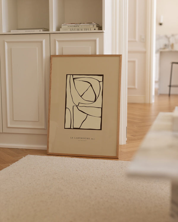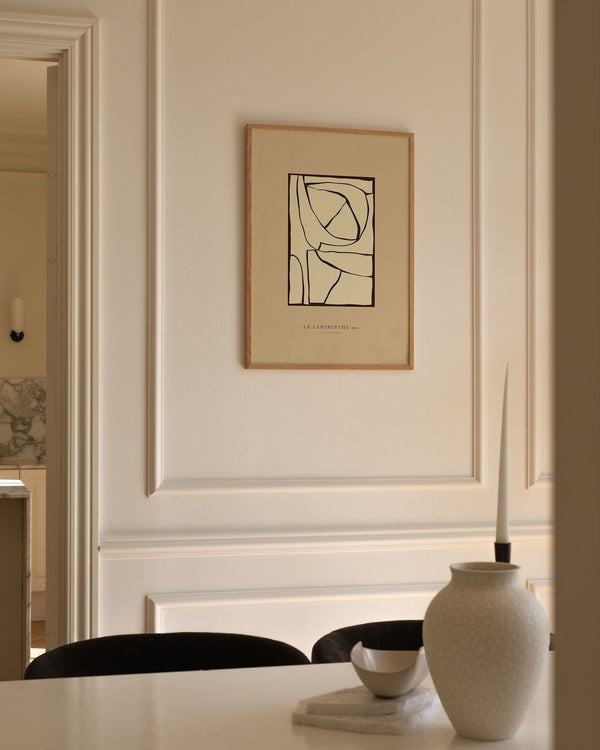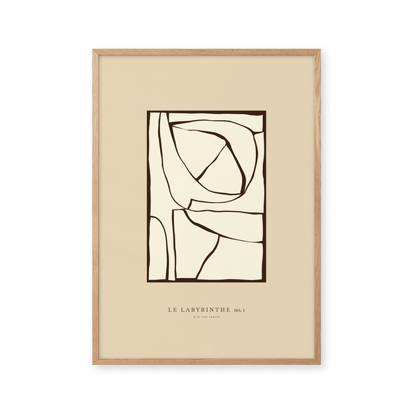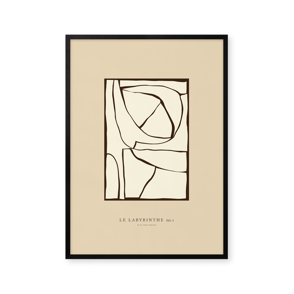 The art poster: “Labyrinth 01” by the artists Mie & Him is a graphically illustrated poster curated by Peléton. It has been significant for them that the poster is open to interpretation.