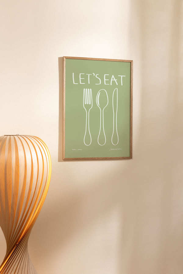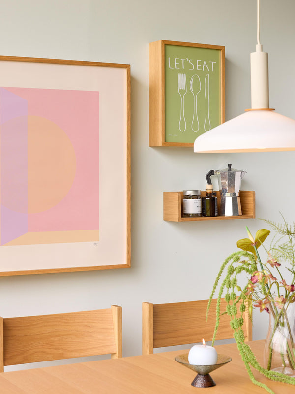The art poster: “Let’s Eat" by the artist Stephie Cardona is a graphically illustrated poster exclusively made for Peléton, as part of the Hübsch x Peléton collection. It has been meaningful to her that the poster is open to interpretation.