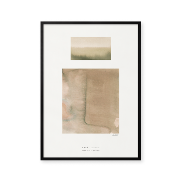 Kunstplakaten: “MEMOIRE 1” af kunstnerne Harrt Studio er en grafisk illustreret plakat der er eksklusivt lavet til Peléton. Det har været betydningsfuldt for dem, at plakaten står til fri fortolkning. Dette værk er en del af en samling af eksklusive kunstplakater der udtrykker minimalisme og enkelhed.