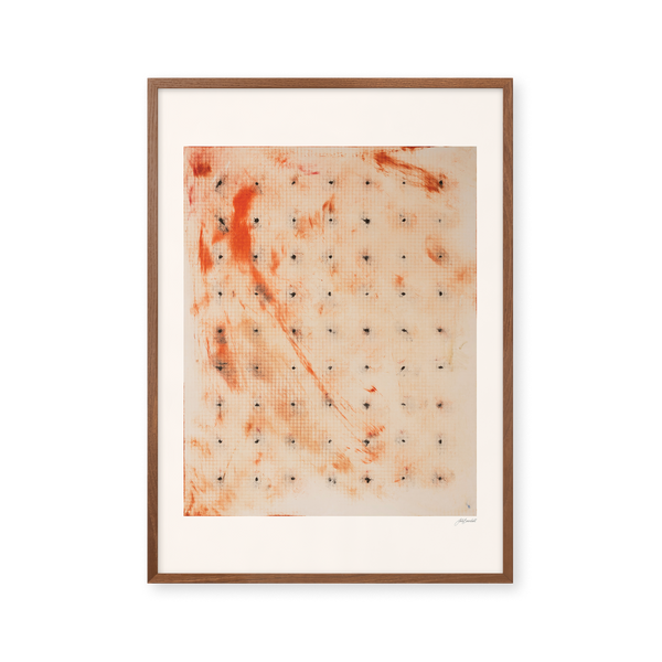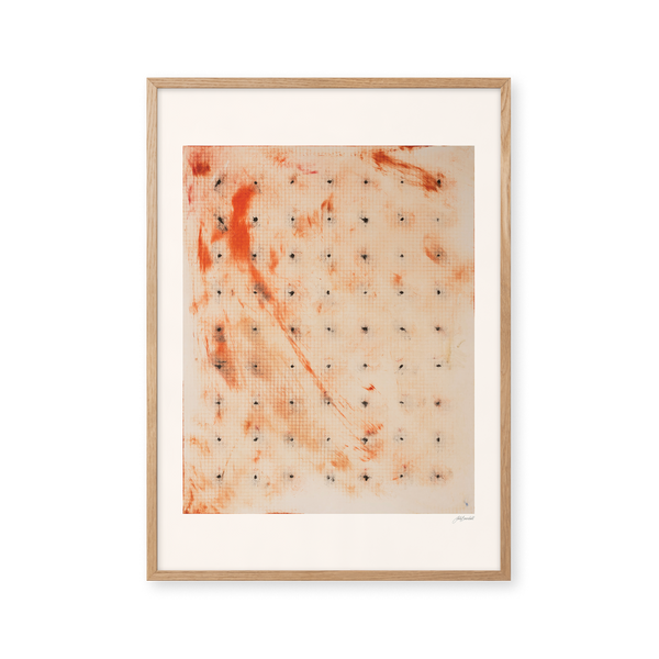 The art poster "Monotype – Red Traces" is part of Julie Barnes Dahl's exclusive monotype collection for Peléton. The art form monotype is based on the squared mathematics notebook, where the grid creates systematics and repetition, but also opens up a free, dreamy space. The strict pattern contrasts with the deep, soft colors of the printing ink, creating a tension between the tight and the lively. For her, it has been important that the poster is open to free interpretation.