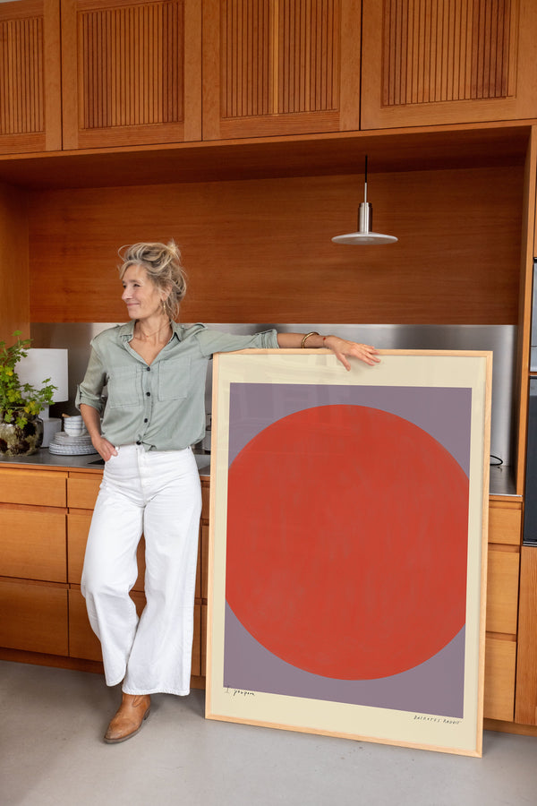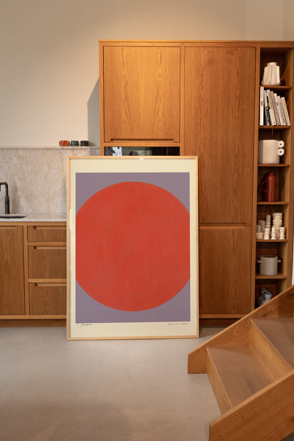 Kunstplakaten: “No. 1, Porpora” er skabt af kunstneren Das Rotes Rabbit og er en del af en kunstserie eksklusivt lavet til Peléton. Serien har karakter og personlighed og fungerer perfekt som et statement piece eller i samspil med de øvrige værker i serien. Farverne og den minimalistiske stil smelter sammen og skaber et harmonisk udtryk, der tilføjer dybde og elegance til ethvert rum.