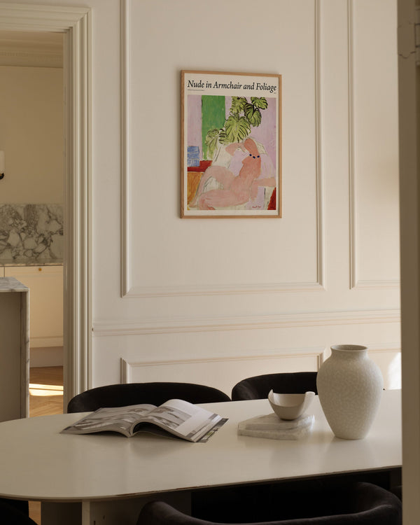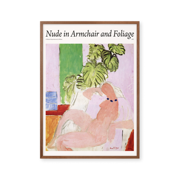 The art poster: "Nude in Armchair and Foliage" by the artist Henri Matisse is a painted poster recreated by Peléton. This poster is part of Peléton's vintage collection with a museum layout. The art poster is produced on quality paper, with long durability, high opacity, and detailed color reproduction.