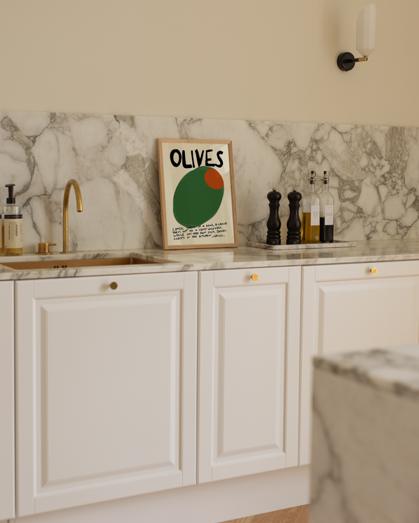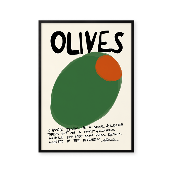 The art poster: “Olives" by the artist Stephie Cardona is a graphically illustrated poster curated by Peléton. It has been significant for her that the poster is open to interpretation.