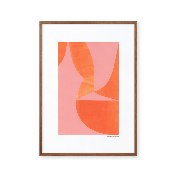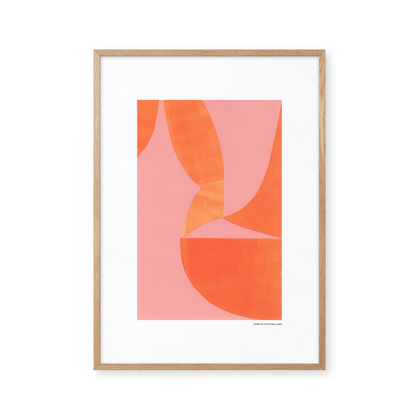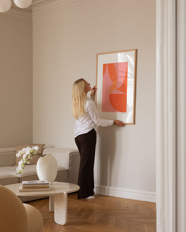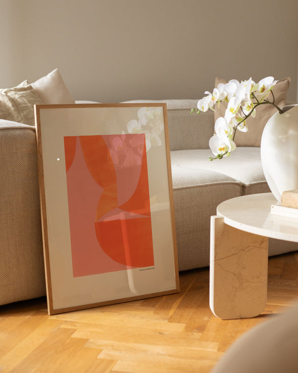 The art poster “Orange rotation 1” by architect and artist Simone Vestergaard is a printed poster made exclusively for Peléton. The poster is part of a series of abstract posters that explore the relationship between form and color, silence and dynamics, density and transparency. Additionally, each poster in the series focuses on principles such as additions, shifts, rotations, and reflections.