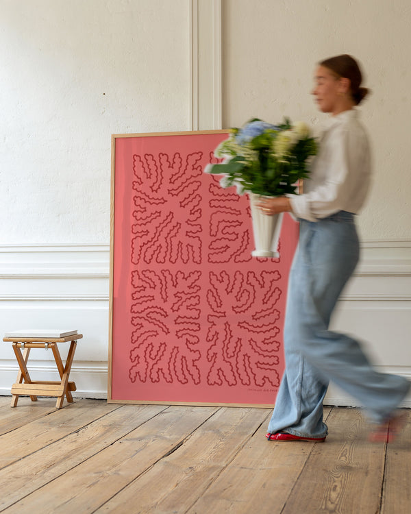 The art print: “Otis Pink” by the artists Mathilda Boalawong is a graphically illustrated poster exclusively made for Peléton. It has been meaningful to them that the poster is open to interpretation. This work is part of a collection of exclusive art prints that express minimalism and simplicity.