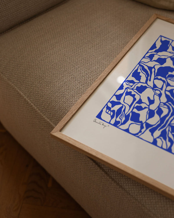 The art poster: “Papercut 03 - Blue” by the artist Little Detroit is an illustrated poster made exclusively for Peléton. It has been significant for Little Detroit that the poster is open to interpretation.