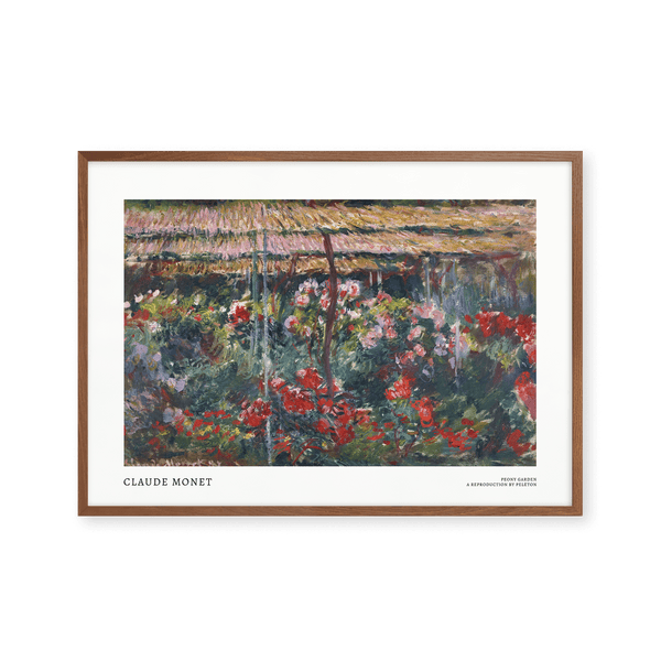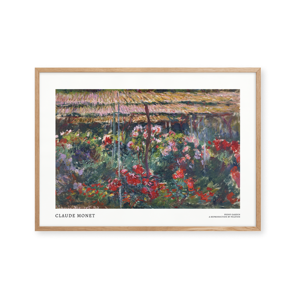 The art print: “Peony Garden” by the artist Claude Monet is a painted artwork recreated as a poster by Peléton. This poster collection with Claude Monet's colorful art prints with light colors is characterized by his realistic and impressionistic style. This poster is part of Peléton's vintage collection with museum layout. The art print is produced on quality paper, with long durability, high opacity, and detailed color reproduction.