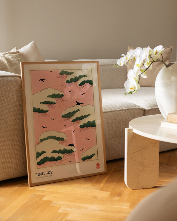 The art print: "Pink sky" by the artist Watanabe Seitei is a poster that Peléton has recreated based on his iconic woodcut. This poster series with Watanabe Seitei art prints is based on his most famous works. This poster is part of Peleton's vintage collection with museum layout. The art print is produced on quality paper with long durability, high opacity, and detailed color reproduction.