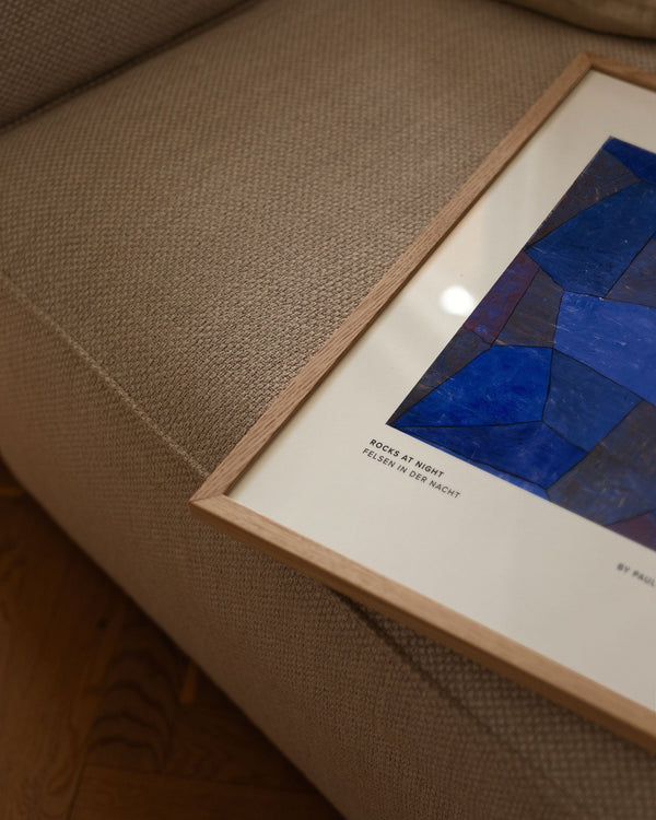 Our frames are made from high-quality materials and are available in solid oak, dark-stained oak, and black-painted pine. All frames come with real glass, while the largest sizes (70 × 100 cm and 100 × 140 cm) feature 2 mm acrylic glass, which looks like glass but is lighter and more shatter-resistant (durable).