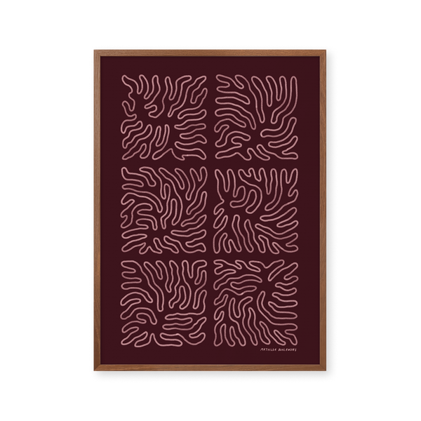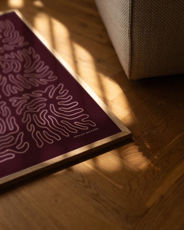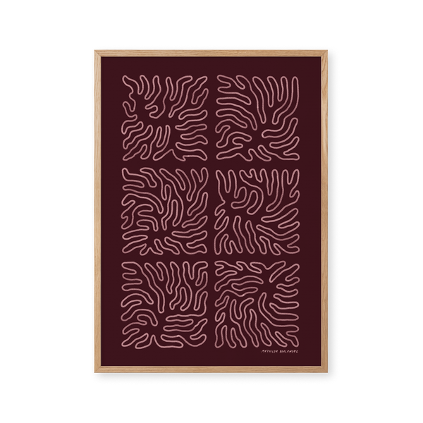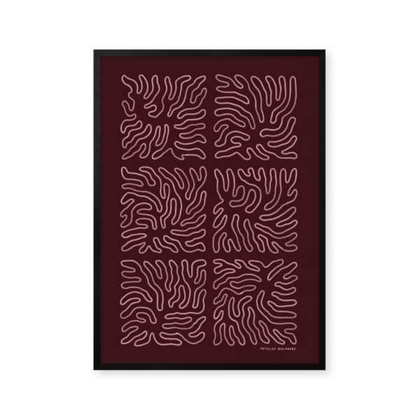 The art print: “Rut Burgundy” by the artists Mathilda Boalawong is a graphically illustrated poster exclusively made for Peléton. It has been meaningful to them that the poster is open to interpretation. This work is part of a collection of exclusive art prints that express minimalism and simplicity.