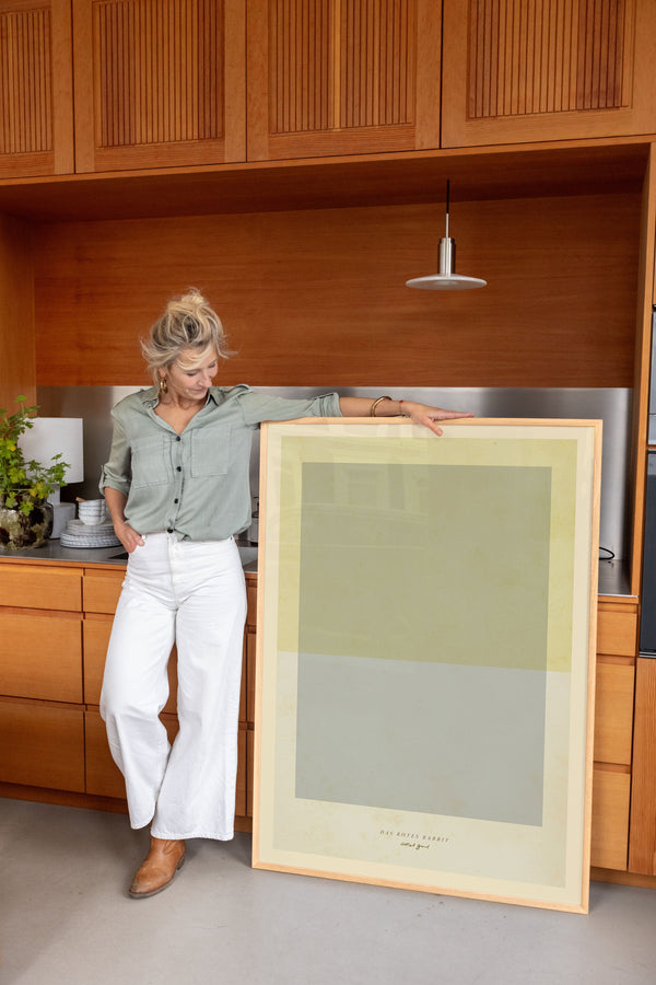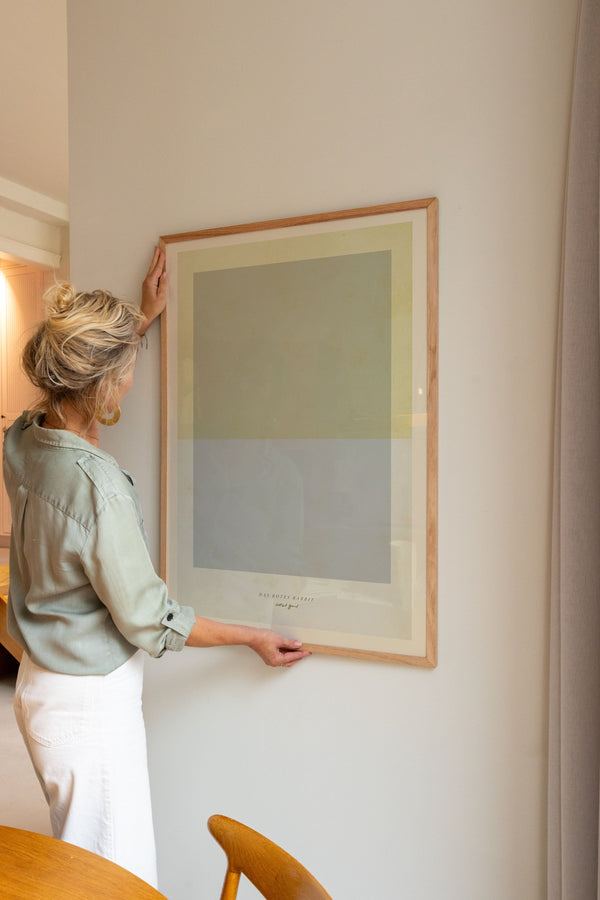 Kunstplakaten: “Settled Ground” er skabt af kunstneren Das Rotes Rabbit og er en del af en kunstserie eksklusivt lavet til Peléton. Serien har karakter og personlighed og fungerer perfekt som et statement piece eller i samspil med de øvrige værker i serien. Farverne og den minimalistiske stil smelter sammen og skaber et harmonisk udtryk, der tilføjer dybde og elegance til ethvert rum.