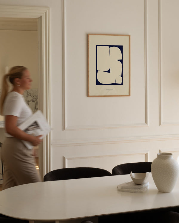 The art print: “Shapes of curves 04” by artists Mie & Him is a graphically illustrated print exclusively made for Peléton. It has been important to them that the print is open to interpretation. This work is part of a collection of exclusive art prints that express minimalism and simplicity.