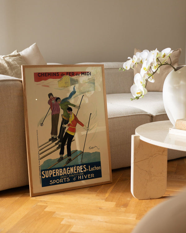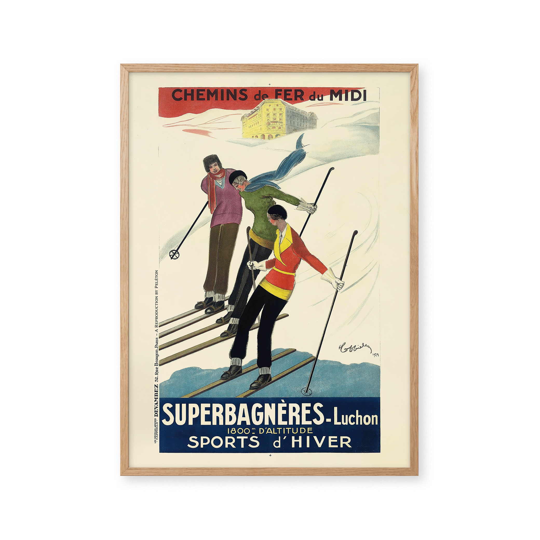 The art print: “Superbagnères-Luchon” by the artist Leonetto Cappiello is a illustrated poster recreated by Peléton. This poster series with Leonetto Cappiello's colorful and illustrated art prints is characterized by his iconic way of combining texts with his colorful designs. This poster is part of Peléton's vintage collection with museum layout. The art print is produced on quality paper, with long durability, high opacity, and detailed color reproduction.