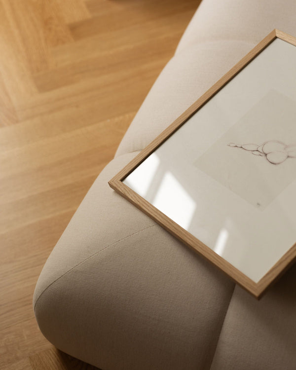 The Frames in oak are made of solid oak. The dark variant is stained to achieve a deep, warm tone, while the black Frame is made of black-painted pine with the same elegant profile.