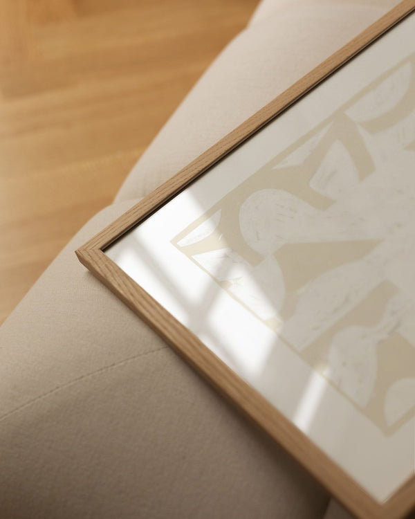 Our frames are made from high-quality materials and are available in solid oak, dark-stained oak, and black-painted pine. All frames come with real glass, while the largest sizes (70 × 100 cm and 100 × 140 cm) feature 2 mm acrylic glass, which looks like glass but is lighter and more shatter-resistant (durable).