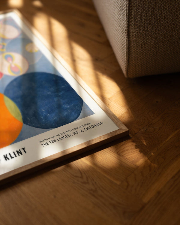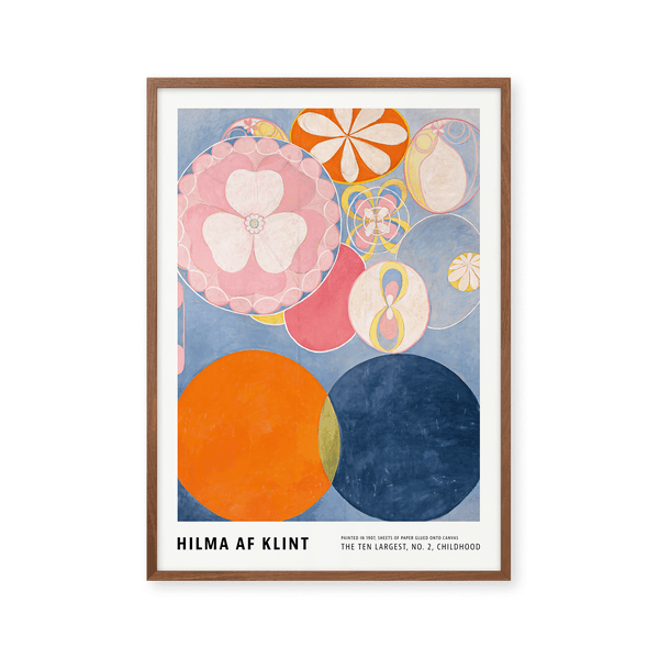 The art print: “The Ten Largest, No. 2, Childhood” by the artist Hilma af Klint is an abstract illustrated print, recreated by Peléton. This print series with Hilma af Klint's unique and abstract art prints is characterized by her inventive and personal expression. This print is part of Peléton's vintage collection with museum layout. The art print is produced on quality paper, with long durability, high opacity, and detailed color reproduction.