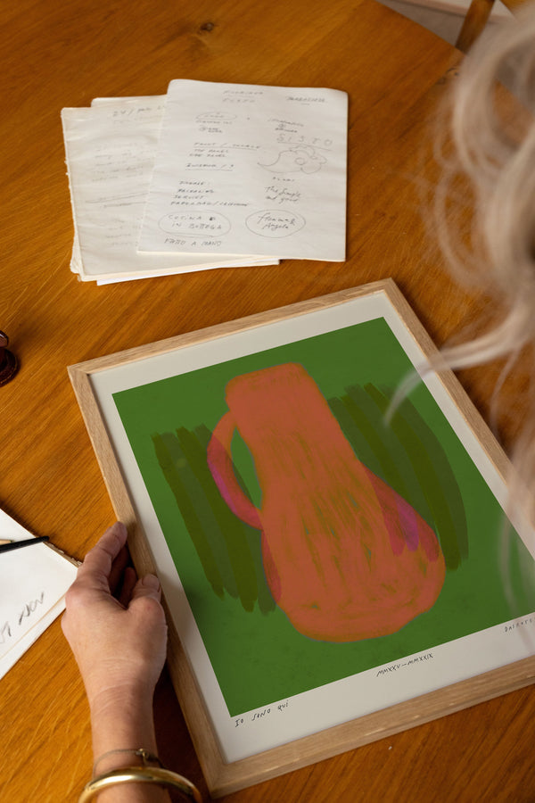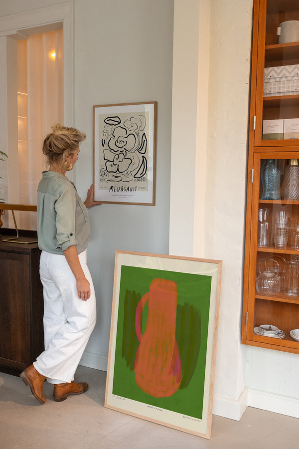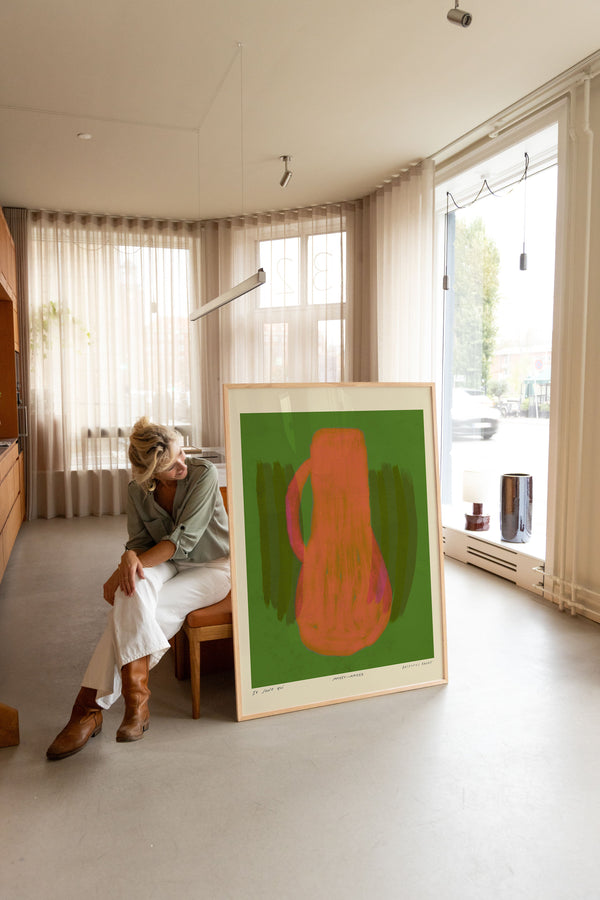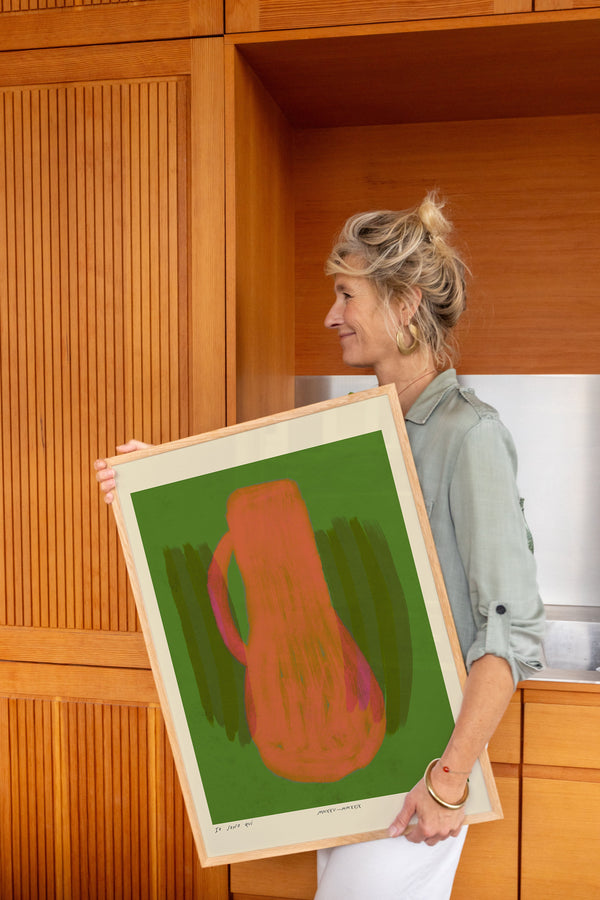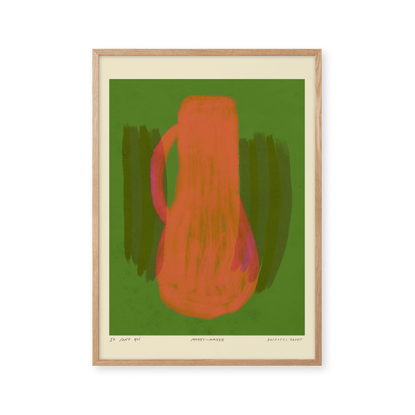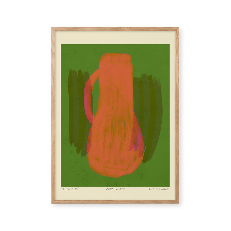Kunstplakaten: "Vase, Forest” er skabt af kunstneren Das Rotes Rabbit og er en del af en kunstserie eksklusivt lavet til Peléton. Serien har karakter og personlighed og fungerer perfekt som et statement piece eller i samspil med de øvrige værker i serien. Farverne og den minimalistiske stil smelter sammen og skaber et harmonisk udtryk, der tilføjer dybde og elegance til ethvert rum.