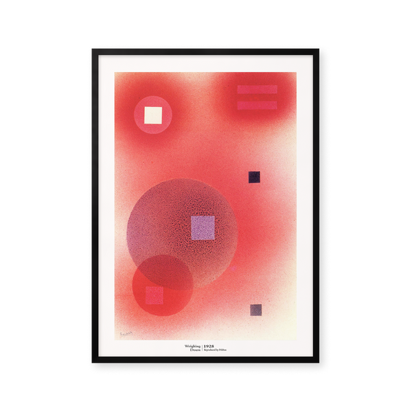 Art poster: “Weighing Down” by the artist Wassily Kandinsky is an abstract illustrated poster, recreated by Peléton. This poster is part of Peléton's vintage collection with museum layout. The art poster is produced on quality paper, with long durability, high opacity, and detailed color reproduction.