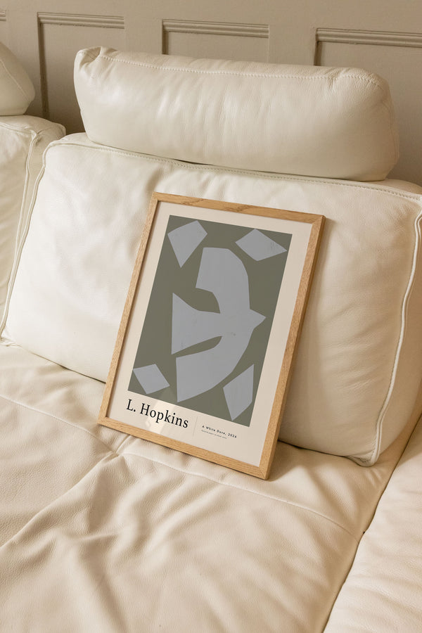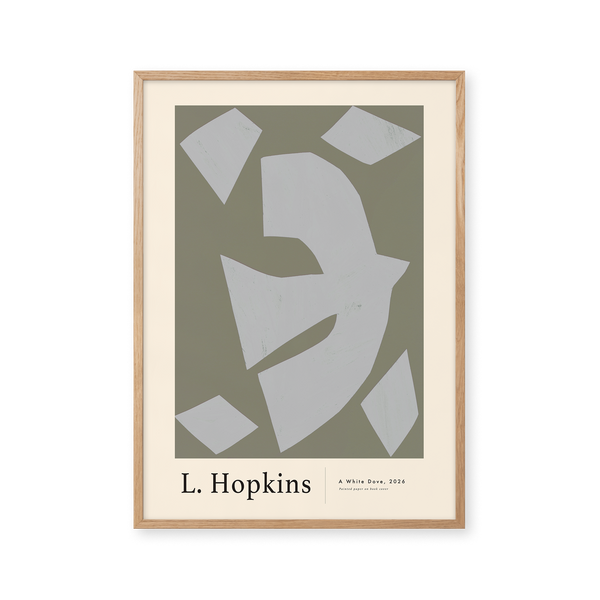 Kunstplakaten: "White Dove” af kunstneren Lauri Hopkins forener papirklip og collage i en sanselig og harmonisk komposition. Værket er eksklusivt skabt til Peléton og står åbent for fri fortolkning.