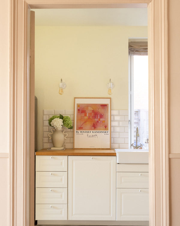 Art poster: “Yellow Pink” by the artist Wassily Kandinsky is an abstract illustrated poster, recreated by Peléton. This poster is part of Peléton's vintage collection with museum layout. The art poster is produced on quality paper, with long durability, high opacity, and detailed color reproduction.