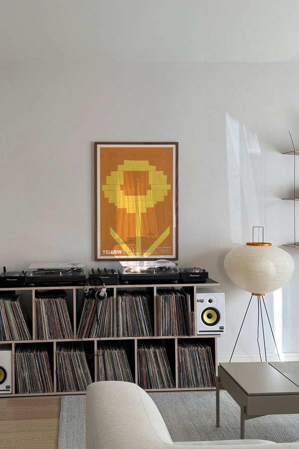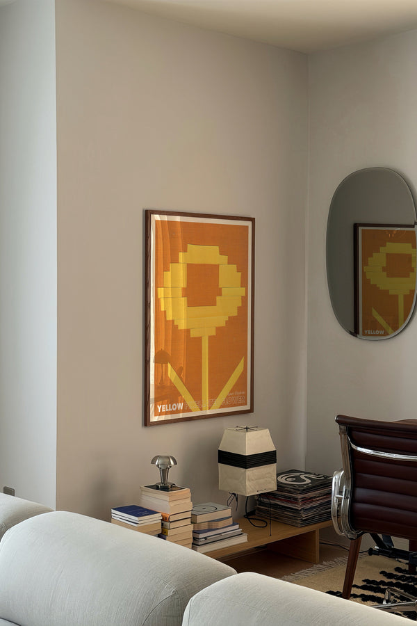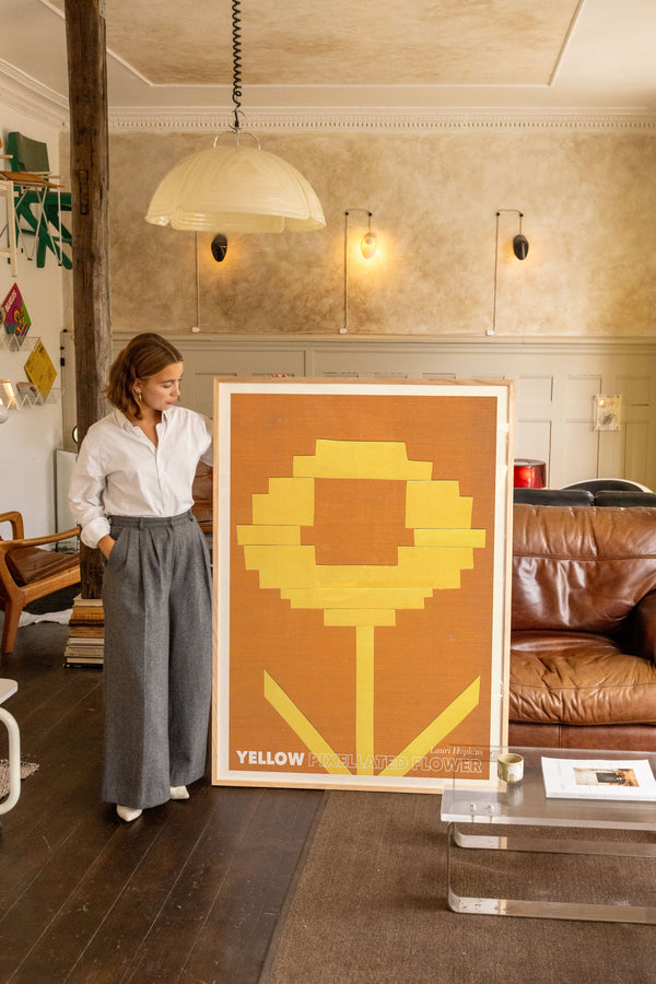 Kunstplakaten: "Yellow Pixellated Flower” af kunstneren Lauri Hopkins forener papirklip og collage i en sanselig og harmonisk komposition. Værket er eksklusivt skabt til Peléton og står åbent for fri fortolkning.